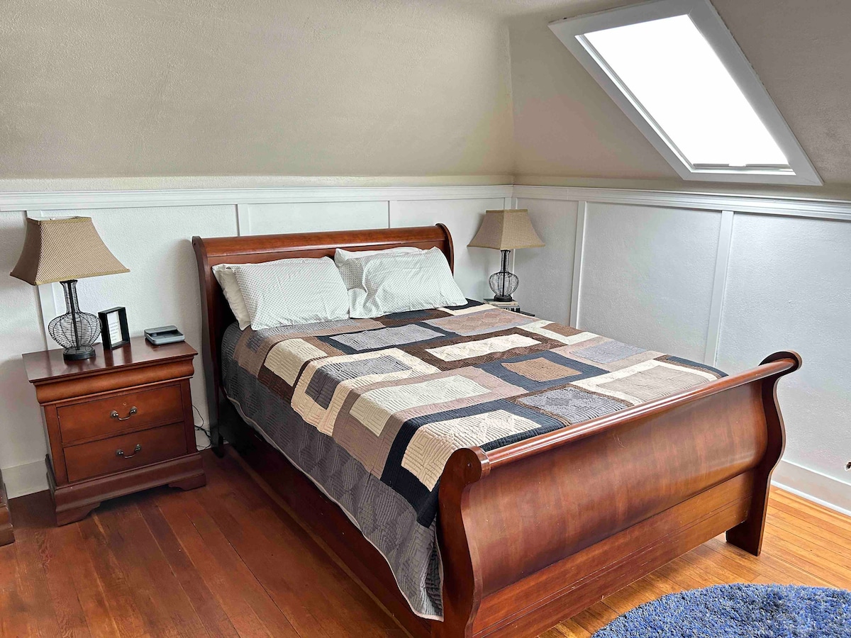 Quiet room located on the front of the home overlooking main street! You are located in walking distance to the beautiful River park and promenade and local cafes, restaurants and shops. All of our rooms have shared access to the full kitchen, family room and dining room area and sun porch. We have on-street parking and wifi is great for remote workers. There are 20+ wineries in the area and are perfect escape for a day trip! This is 1 of 5 rooms in the home