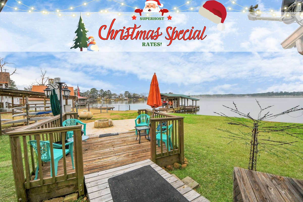 Unwind at this peaceful and magical lakefront retreat. A well-designed home that ensures a comfortable stay for guests of all ages. Guests have full access to a 2-story lake house. Enjoy private docks & boats with year-round lake access. Have fun and relax with hammocks, games, grills, and campfire. Enjoy the stunning views and starry nights that makes time slow down. Make lasting memories for all those special times spent with family & friends.