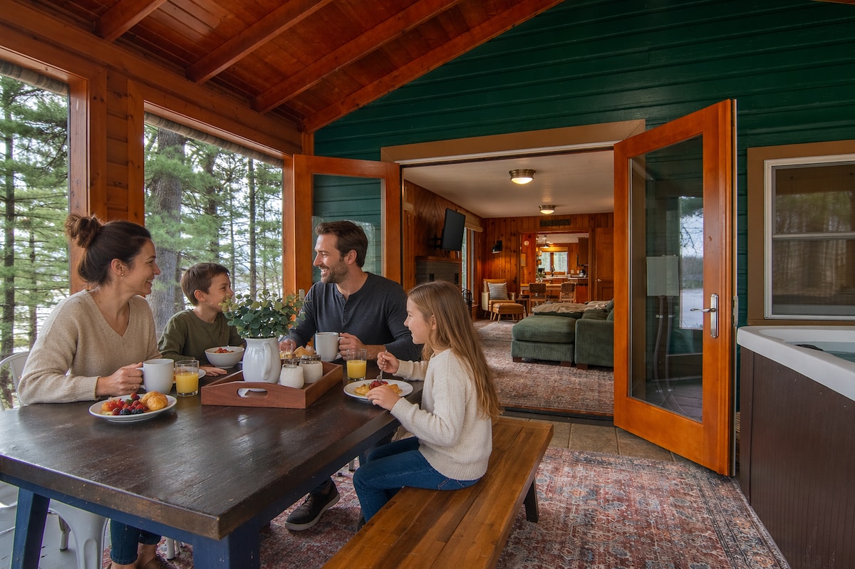 Escape to Little Pine Lake Lodge, a newly built, year-round retreat designed for rest and recreation. Set on a peaceful private lake near Luck/Balsam Lake, Wisconsin, this modern three-building property includes a Main Cabin, Guest Cabin, and Pavilion — each with its own charm. Guests can unwind in the sauna, steam shower, and hot tub, paddle across the lake, or simply relax with panoramic water views and luxury amenities. Enjoy local wildlife or just sit back and disconnect.