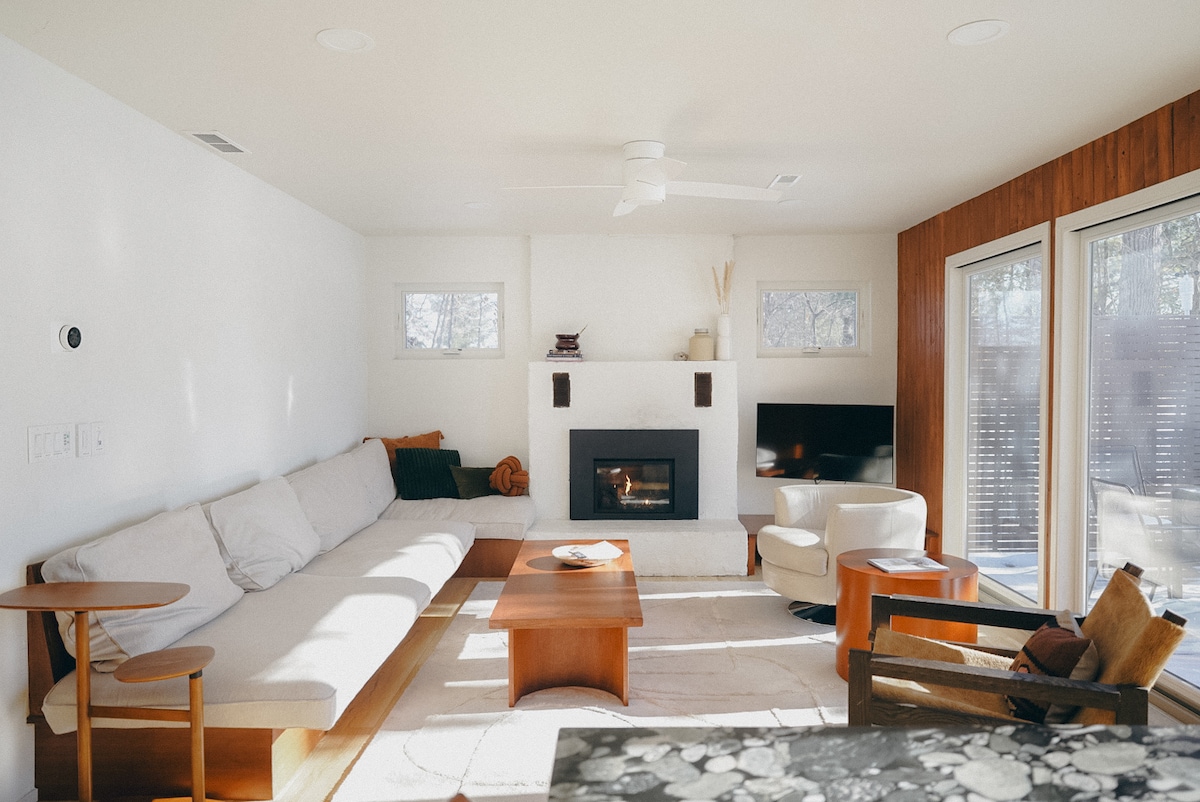 We finished building this modern Scandinavian cabin in spring 2020. It’s been featured in Vogue and on Magnolia Network. The cabin sits at the end of the road on a private lot with a perfect view of sunsets over the nature side of the lake. Drive past farm fields, into the woods, and onto our private gravel road, arriving at the driveway. Watch loons, tundra swans, eagles, beavers and deer while you relax by the lake. Pontoon boat rental is available as an add on! Pets welcome for a $90 fee!