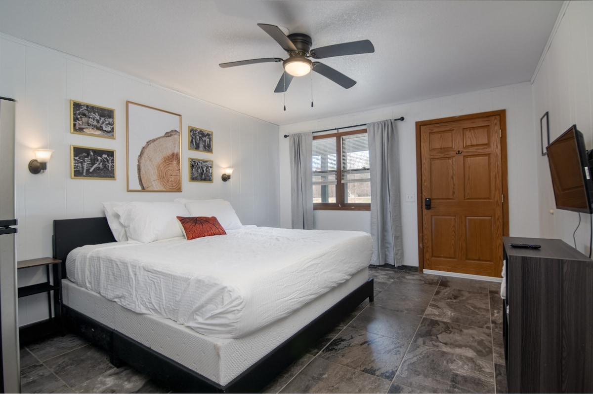 Welcome to the Lumberjill Lodge in Balsam Lake, WI. ➤ Great location, Walk 3 blocks to downtown shops, bars + eats ➤ 1 Queen Bed ➤ Fridge, Microwave, TV, Coffee ➤ Side Tables, Lamps, Blackout Curtains ➤ Full Bathroom w/ Tub ➤ Keyless entry - EASY ➤ Internet ➤ Hopsack Coffee Shop + Gifts .2 mile ➤ Balsam Lake Brewery & Market .3 mile ➤ Balsam Lake Boat Launch + Beach .5 mile Perfect for solo travelers, fishing enthusiasts, and couples looking for a relaxed stay.