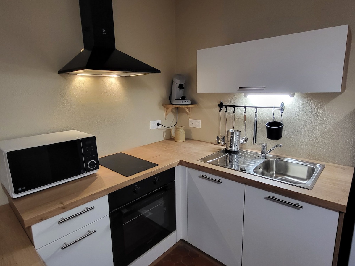 Ancienne maison paysanne sur 3 niveaux façon duplex. Entrée sur une cuisine équipée, une grande table à manger et une cheminée. Au 1er, une chambre ouverte et une salle de bain. De là , part une échelle en mezzanine pouvant accueillir 2 personnes , couchages type futons sur plancher bois. Ce gîte est attenante à une maison d'habitation datant de 1826 . Classé vous me trouverez sur le site Tourisme Aveyron joignable au 06 30 22 41 72