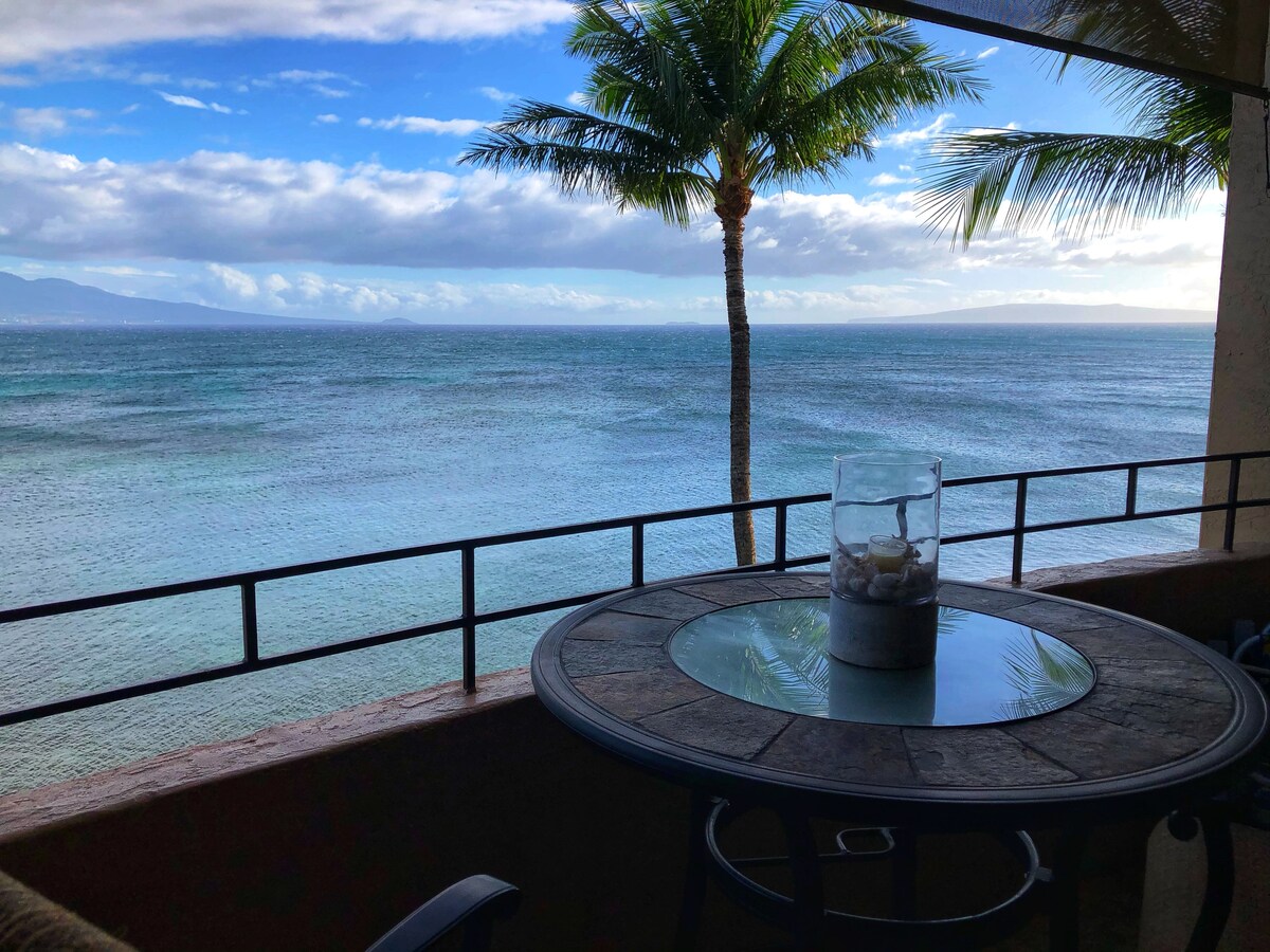 SPECTACULAR OCEAN AND SUNSET VIEWS, including outer islands from the living room and lanai. You'll enjoy drinks in the evening watching the incredible sunsets. The condo has been totally redecorated and upgraded. The kitchen and bathroom have maple cabinets and elegant granite counter tops. There is a comfortable king size bed, a well-stocked kitchen, central AC, with all new bamboo floors throughout, and a new washer / dryer. The Condo is owned and maintained by Maui residents.