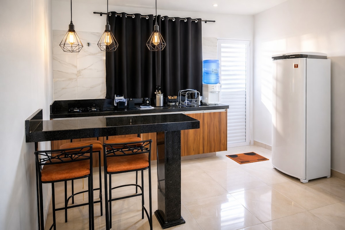 Flat disponível para você se hospedar em Indaiatuba e desfrutar de uma experiência maravilhosa na cidade. Ambiente conta com uma disposição moderna e aconchegante, oferecendo todos os utensílios necessários para que sua estadia seja excepcional. O Flat dispõem de um cozinha (cooktop, microondas, geladeira, utensílios de cozinha, louça), uma suíte (TV smart, cama Queen size, ar condicionado, rouparia completa, travesseiros, secador), uma sala de estar (smart tv, mesa, sofá) e uma sacada.