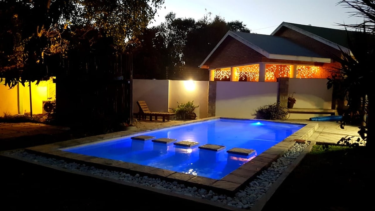 Experience the Karoo Cottage in the bushveld, a serene retreat just 10 minutes from central Polokwane. Bask in the open skies with breathtaking mountain views by day and gaze at starry nights from the hot tub (KOL-KOL) with a glass of sparkling wine. This charming cottage, boasting stunning views, is convenient. Perfect for celebrating special occasions or simply escaping the hustle and bustle, this peaceful haven is an ideal getaway.