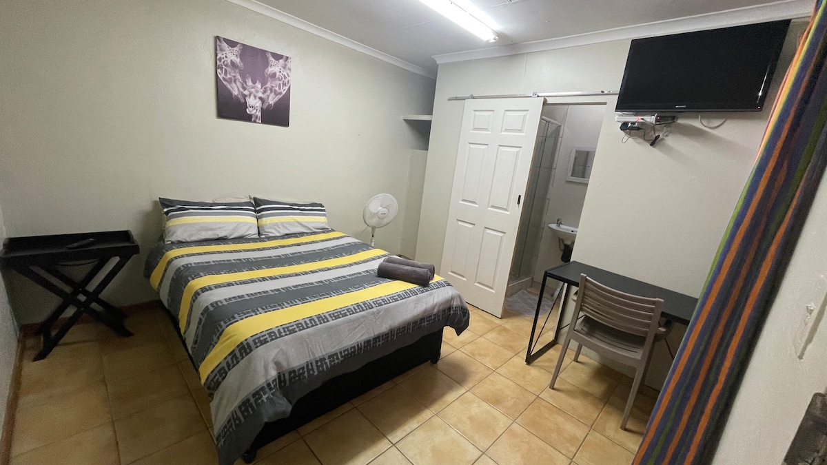 Newly renovated flat with private entry, free under-roof and paved parking. Solar recently installed. Borehole water. Child- and pet friendly. Private braai area. Two work spaces. USB connections in wall plugs. Free wi-fi. TV with Netflix. Hair dryer and iron. Queen size bed. Private kitchen with air fryer, microwave, toaster, kettle and plunger, crockery and cutlery. Exceptionally spacious bathroom with bath, shower, twin tubs, bidet and outer seating.