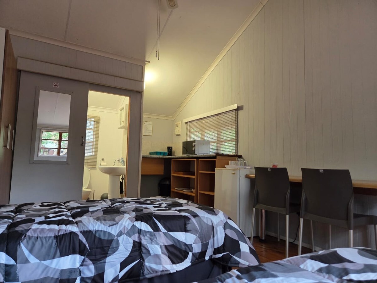 Unit 5 has 2 bedrooms. The main air-conditioned bedroom is furnished with a king bed that can be converted into 2 single beds, and the second bedroom also has 2 single beds. The bathroom is fitted with a shower, toilet and basin. Includes a full kitchen.
