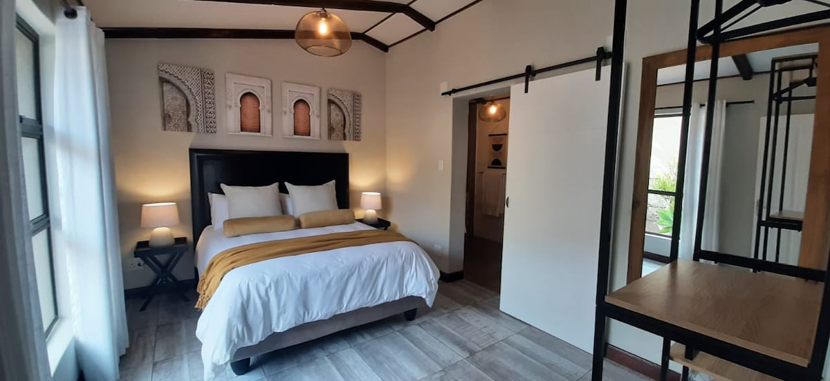 Escape to serenity! Our stylish retreat offers 3 spacious bedrooms, each with its own bathroom. Unwind in our relaxing hot tub under the stars. Perfect for a peaceful getaway. Kick back and relax in this calm, stylish space. Located in a safe, quiet neighborhood with easy access to shopping malls, convenience stores, Peter Mokaba stadium and hospitals...