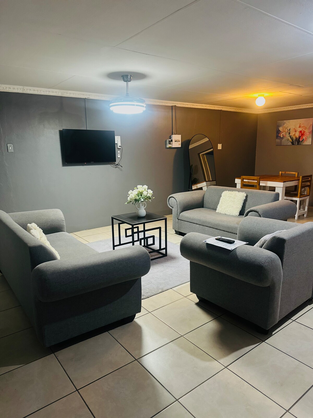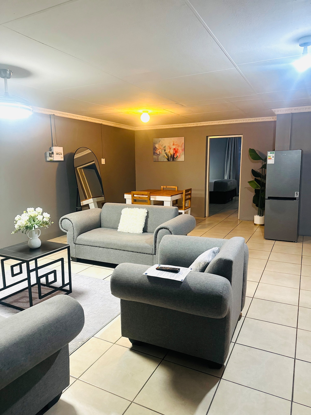 Unit 2 Spacious Self-Catering Comfort Perfect blend of space and convenience in this fully equipped self-catering unit. Featuring a bedroom, full bathroom, dining area and a comfortable, spacious lounge with couches. Kitchen equipped with a fridge, stove, microwave, kettle, pots, and utensils. Guests can also enjoy a smart TV, dedicated workspace, WiFi, ensuring both comfort & productivity. Perfect for longer stays, business trips, or guests seeking a home-away-from-home experience.