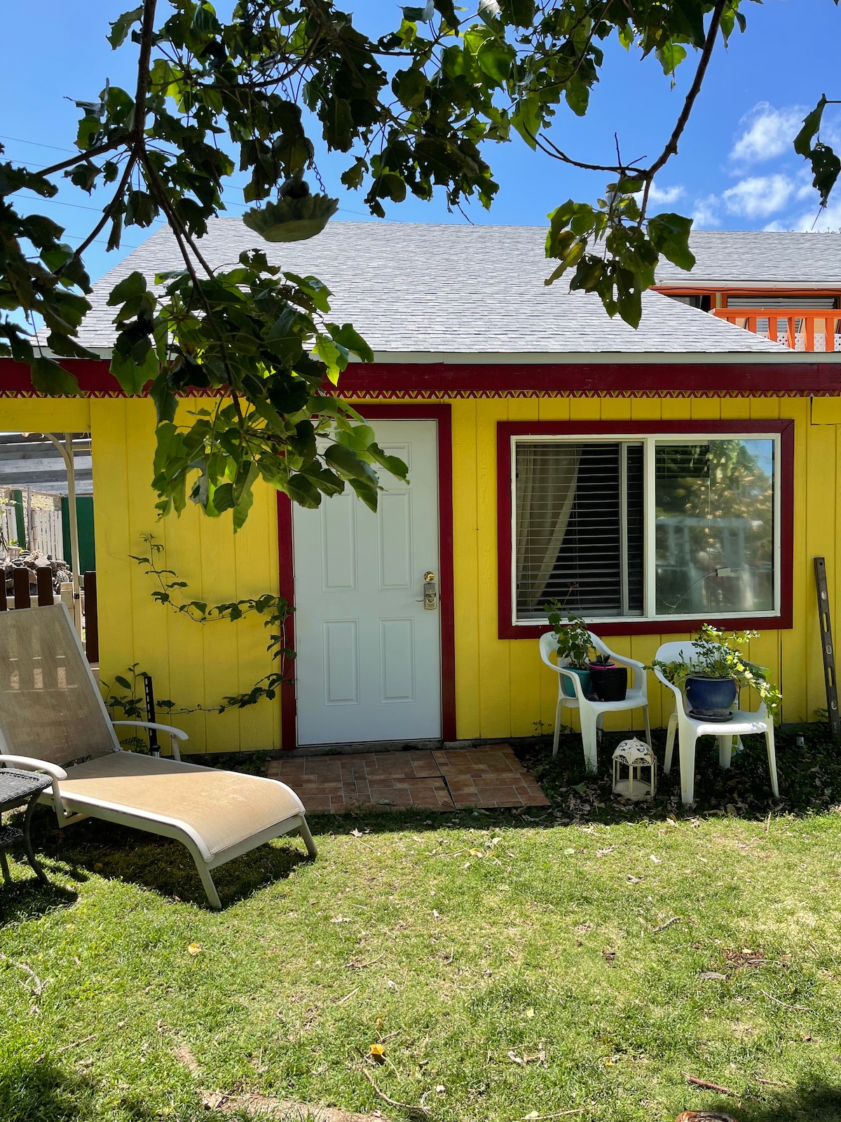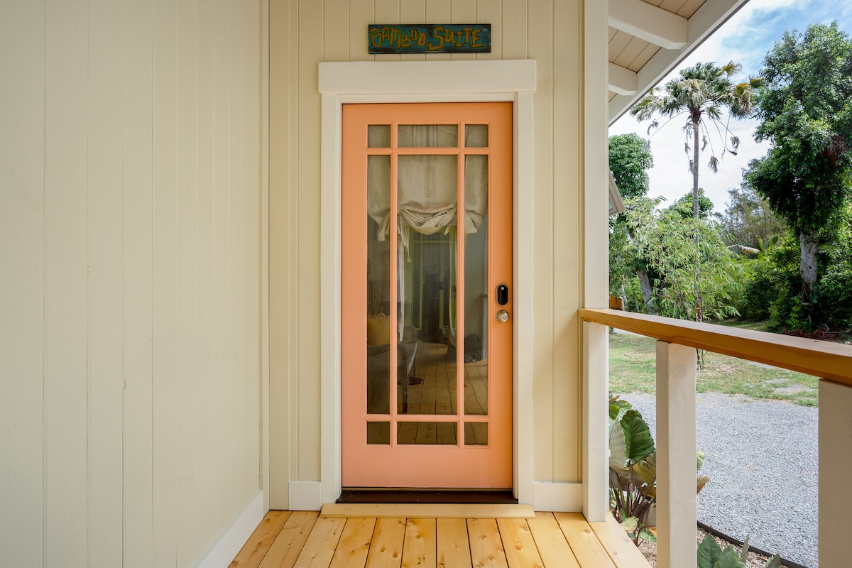 Newly built studio in back yard of charming in town neighborhood plantation house in Hawi. Walking distance to town, restaurants, shops. Glorious view of Maui and Alinuehaha Channel from private Lanai. Off street parking and private entrance.