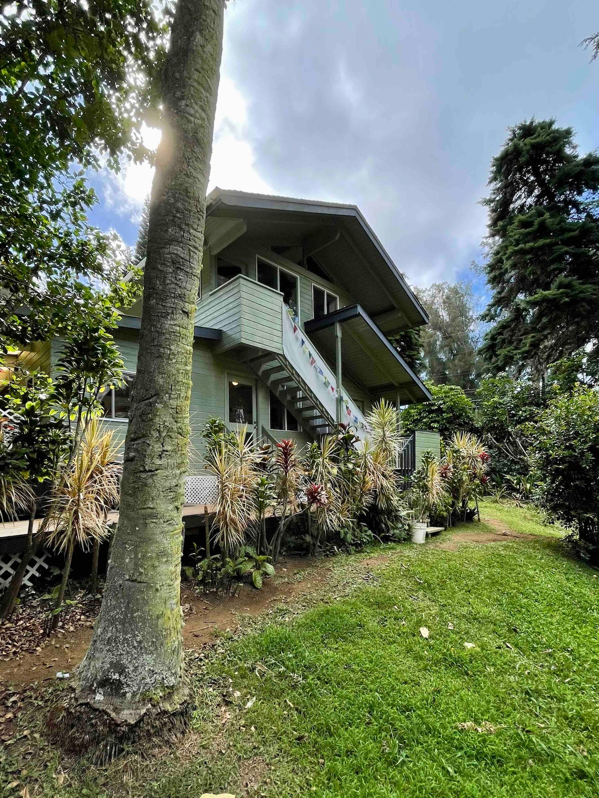 "Waimea Honu Hale". Honu is Hawaiian for turtle, and Hale is Hawaiian for home. Waimea Honu Hale is a magical home nestled in the lush green of the Waimea hills. You'll love the natural outdoors, complemented by the classy interior finishes like the custom walk-in showers, black leather granite counters, or the natural wood floors and Koa rails. This cute haven away from the Hussle of life may have you calling Waimea home. You'll want to stay forever. The beaches are 20 minutes away.