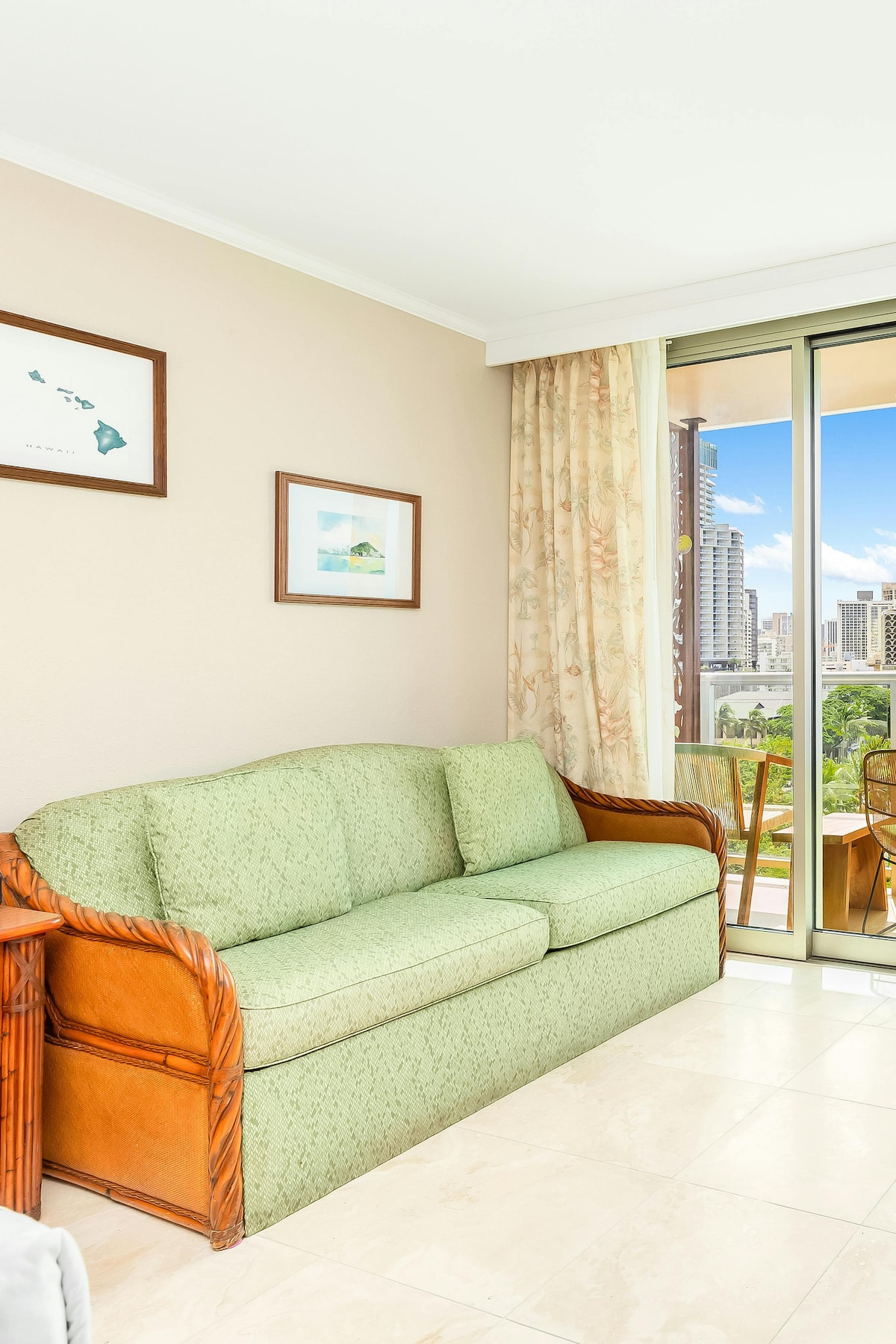 Located at the beginning of the world famous Waikiki, this condo is close to all the best restaurants/shopping centers that Waikiki has to offer. Magnificent ocean and park views from this beautiful 316 square foot studio with private balcony, full kitchen, queen bed, sofa bed, 55" TV, dyson vacuum, iron, coffee maker, rice cooker, beach towels and snorkeling gears. Also, parking (normally $40/day) is FREE & there is no resort fee ($35/day). so save additional $70 per day by staying with us.