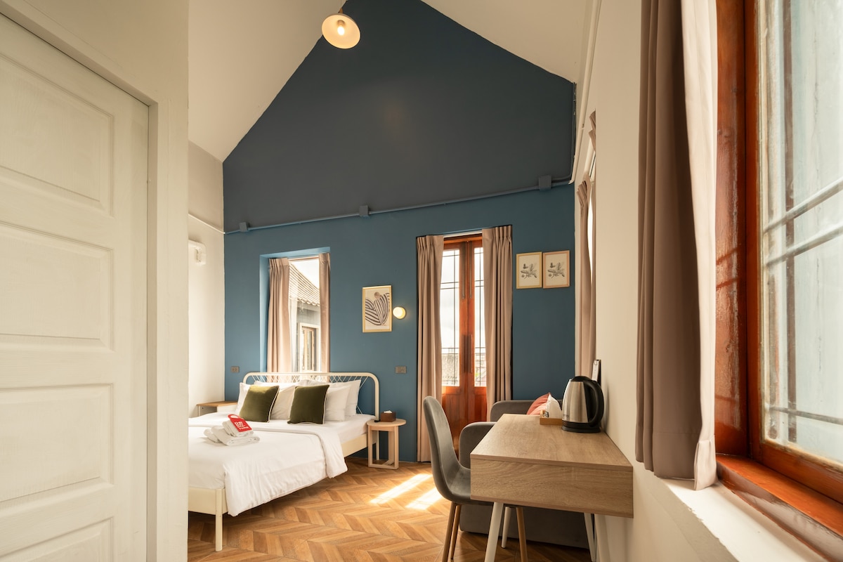 Room no.301 is 65 sq.m., the Mustang Blu is a magnificence hostel situated in Bangkok's old quarter; renowned for its colonial-style buildings. Located in the Majestic Triangle on Maitri Chit Road. Easy reach of the Hua Lamphong MRT subway station and railway station. Our rooms are designed to match the original vintage architecture, furnished with antique furniture and raw materials to create an extraordinary atmosphere guaranteed to give you an experience you will never forget.