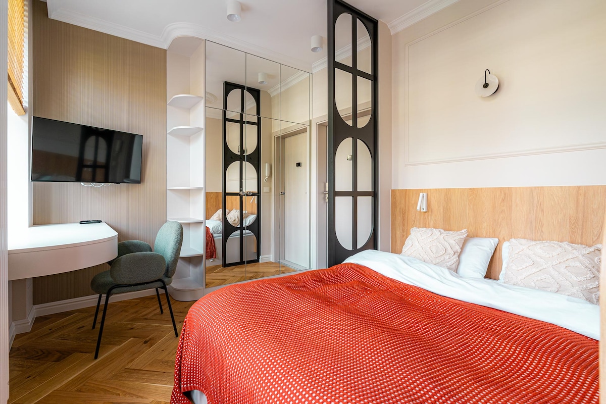 Enjoy a peaceful and stylish stay at this centrally-located place. A newly built, beautifully furnished apartment, perfect for a quiet stay in the heart of Gdańsk. Located on the greenest side of the city center, right next to Góra Gradowa. Although historical and cultural sights, shops, and restaurants are only a 10-15 min walk away, the area feels peaceful and secluded. The place offers a unique, cozy, and very comfortable design, perfect for a couple and a weekend escape.