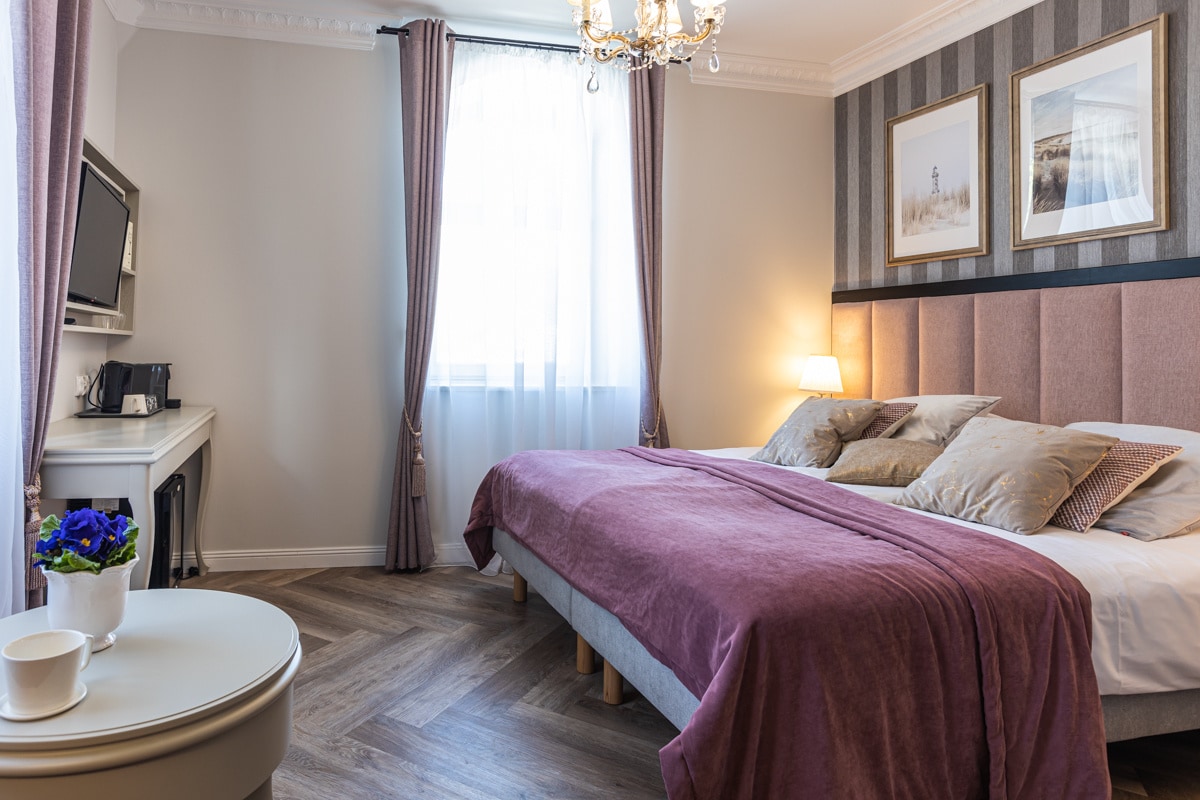 Komfortowe i eleganckie wnętrze, które w pełni oddaje charakter i styl Villi Antonina Sopot. Pokoje typu Classic wyposażone są w kontynentalne łóżko podwójne 180 cm, telewizor z płaskim ekranem, biurko oraz zestaw do parzenia kawy i herbaty. W pokoju znajdują się okna o podwyższonej izolacji akustycznej, nowoczesny system klimatyzacji z systemem filtrów przeciw bakteriom i wirusom. Dostępny jest bezpłatny internet bezprzewodowy.