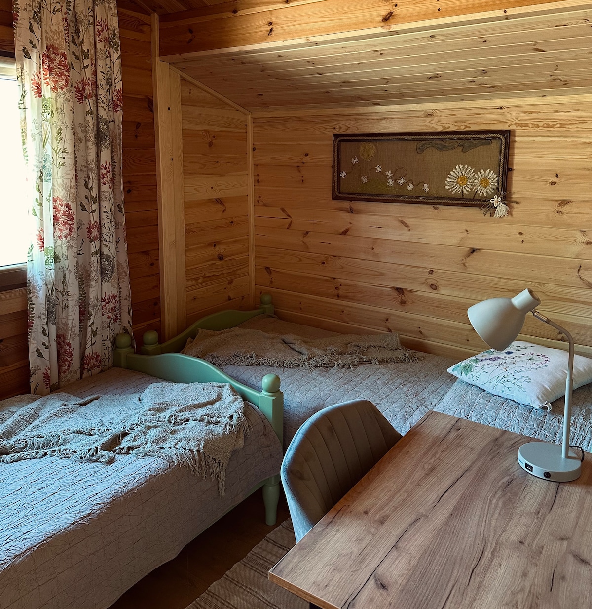 Domek stworzony z rzeczy które zostały zapomniane lub odstawione w kat. Za pomocą czarodziejskiej rożki nadajemy im ponownie blasku! Stuletnia drewniana podłoga, odrestaurowane żeliwne okna z odzysku, rustykalne belki pokazujące przemijanie czasu. Dodatkowo dla gości stworzyliśmy wspólna strefę do spędzania czasu w Wiacie Batalion jest kominek , kuchnia polowa oraz piec do pizzy ,miejsce do grillowania i ognisko. W pakiecie codzienne koncerty ptaków.