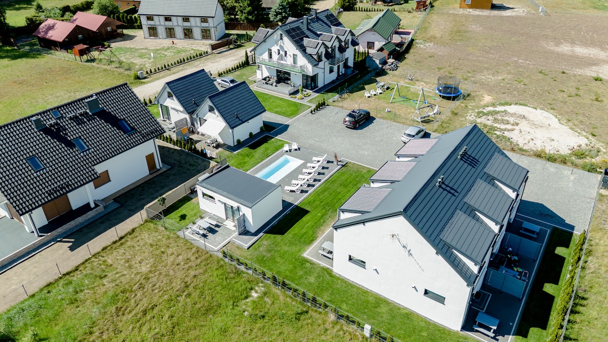 Zafunduj sobie odpoczynek i wyciszenie. Nasz ośrodek to 6 domów o powierzchni 80 m2. Jesteśmy położeni w malutkiej kaszubskiej wsi, przy lesie i nad rzeką. Nieopodal znajdują się najpiękniejsze plaże w Polsce. U nas króluje natura, cisza i spokój. Miejsce idealne aby wyrwać się z głośnych miast i celebrować wyjątkowe momenty.