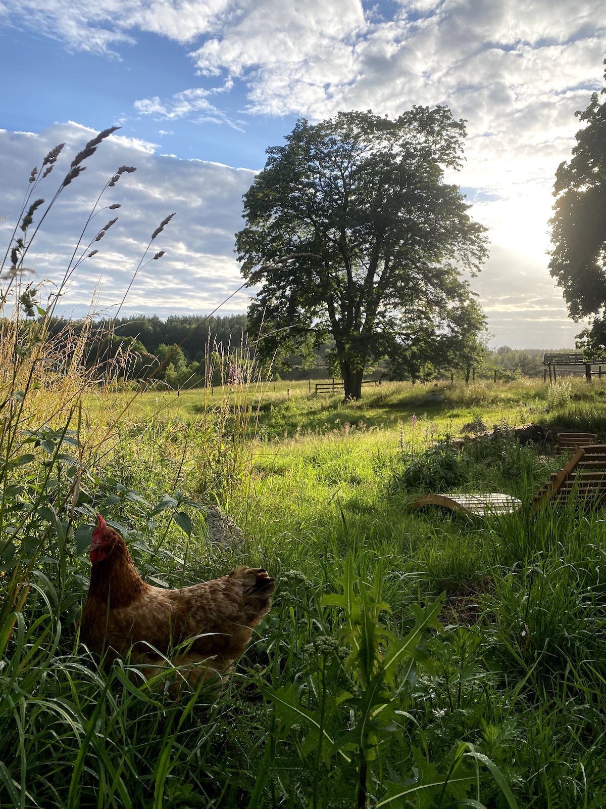 *Please read carefully full description before requesting* The house is situated just on the side of the forest, where the view spreads on local fields. Very quiet and peaceful area. The distance to the lake Jezioro Ostrzyckie is 500m Perfect choice for those, who appreciate active holidays with natured surroundings. Our place is certainly family friendly, so you can rest with the book while kids playing outside :)