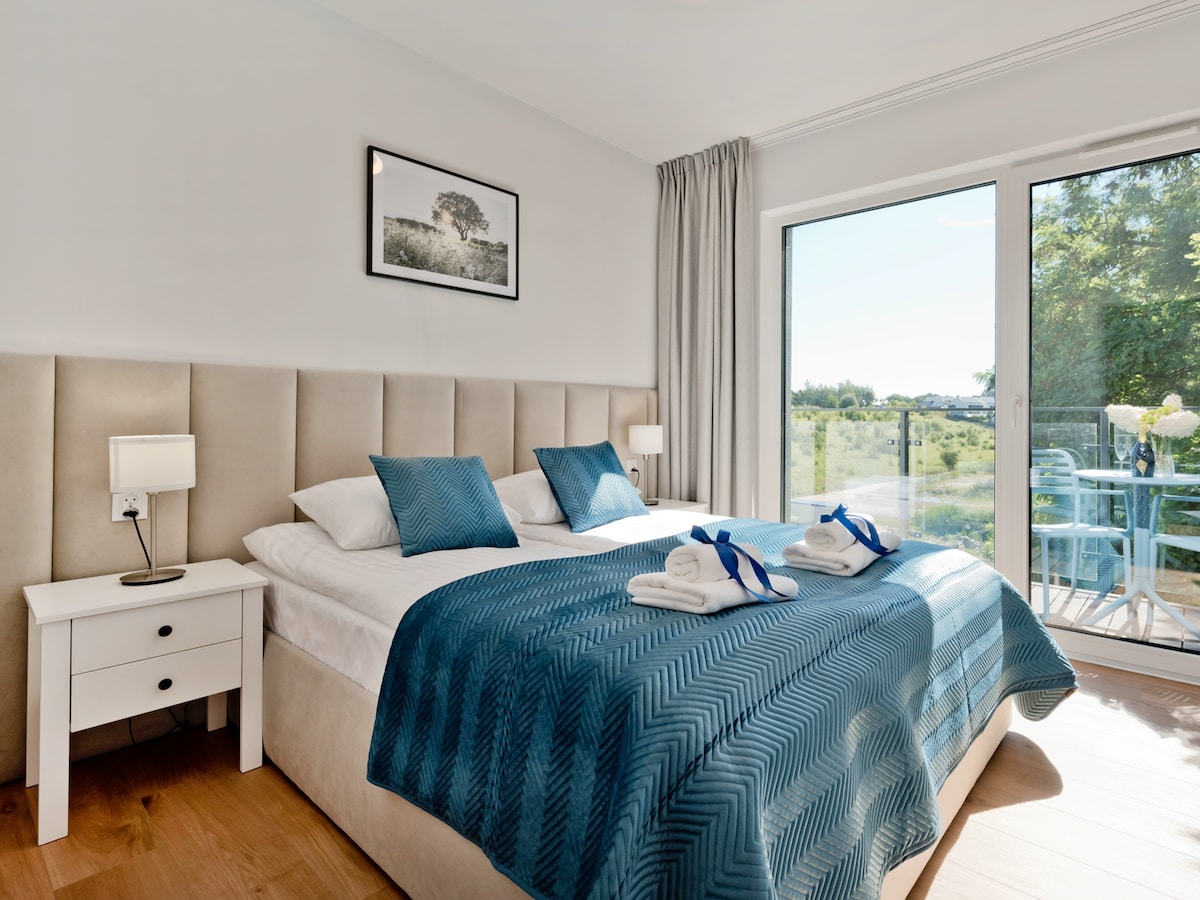A freestanding bathtub, balcony, and stylish interiors — perfect for couples or families with children! This apartment features a bedroom and a sofa bed in the living room, comfortably sleeping up to 4 guests. On-site amenities include a gym, sauna, rooftop terrace, and playground. Located near Gdańsk’s Old Town and the Motława River — ideal for a romantic getaway or a family stay.