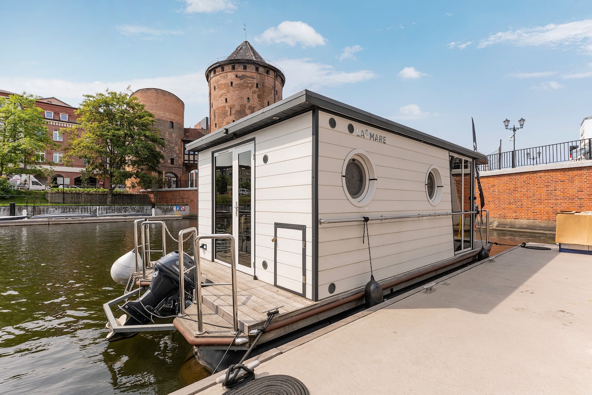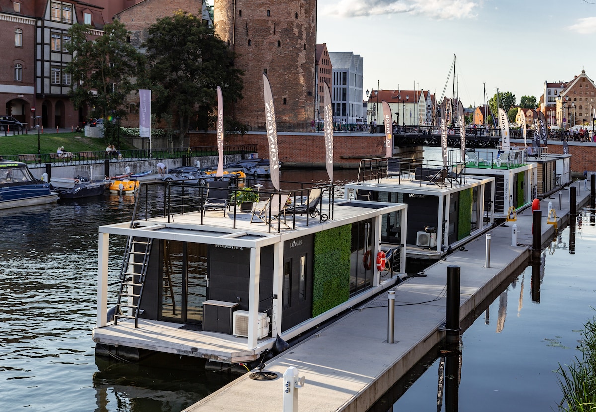 Houseboat La Mare Double I is a unique place to stay in the best location in Gdańsk. Our facility stands out from others. It is moored on the water and can accommodate 2 adults.