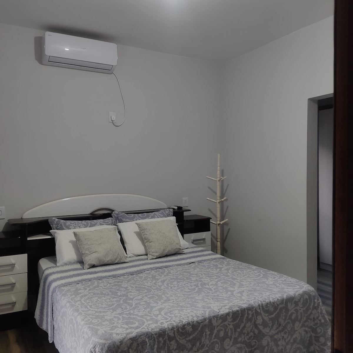 Nosso espaço é ideal para pessoas que buscam um local familiar, tranquilo, aconchegante e com um custo benefício excelente! A pousada possui uma cama box casal padrão extremamente confortável, sendo ortopédica, uma cama box de solteiro, cozinha completa com utensílios básicos, sofá, televisão com antena local, ar condicionado, garagem privativa com churrasqueira e banheiro. Atenção: todas as nossas tomadas são 220v. Você não vai querer sair desse lugar charmoso e único.