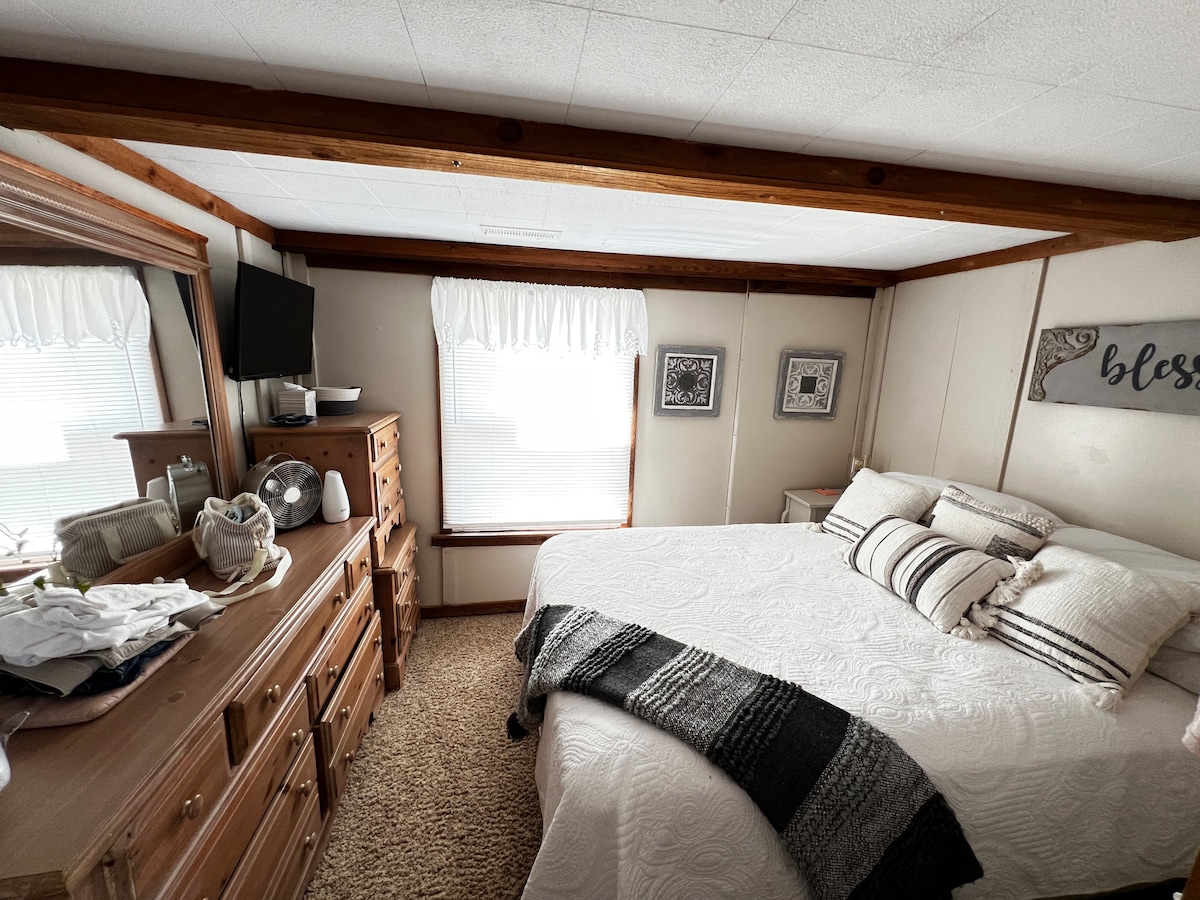 Escape to our 5-star cabin, minutes from Pomme de Terre Lake & Lucas Oil Speedway! Perfect for families, anglers (ample boat parking!), and race fans. This cozy 2BR retreat sleeps 6, with a full kitchen, modern bath, and WiFi. Enjoy prime fishing, boating, and thrilling race action. Your ideal Hermitage, MO getaway awaits! Explore nearby shops & charming local restaurants. Book now for an unforgettable experience. Discover the perfect blend of lakeside relaxation and speedway excitement.