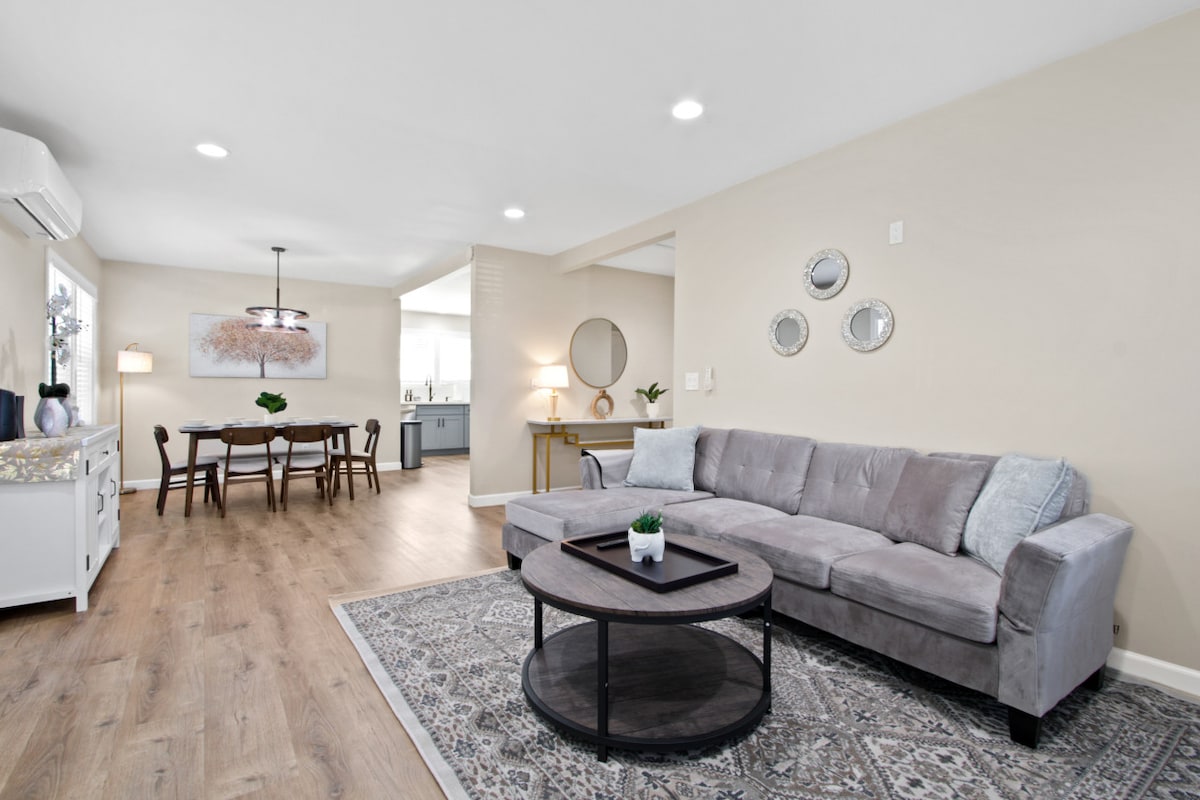 Stay minutes from Fairplex & top colleges in this stylish, light‑filled home featuring a private spa shower, mini‑gym access, fast Wi‑Fi & self‑check‑in. - Short drive to Claremont Colleges, Fairplex, and Cal Poly - Self check-in with keypad; reliable high-speed Wi-Fi & workspace - Ideal for business travelers, visiting families, or campus tours - Light, airy interiors with modern décor and 5-star cleanliness In a lively area near downtown with typical city activity.