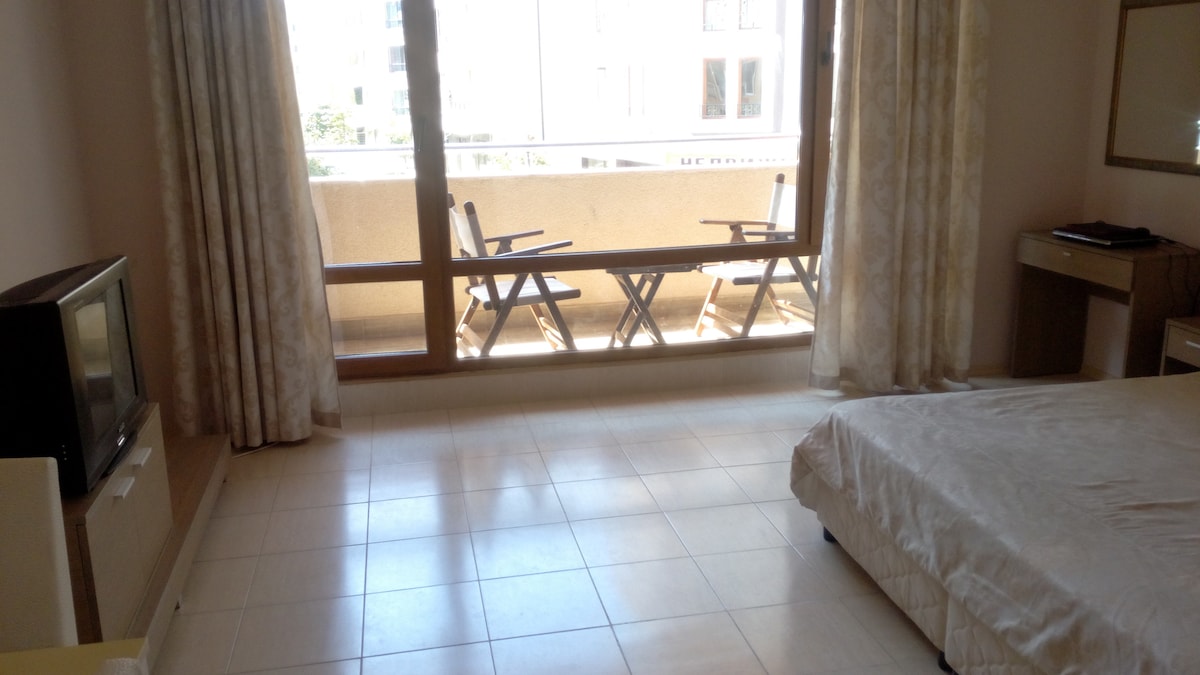 "You may simply relax & enjoy your drink and the sun by the pool!" My holiday apartment is located in a tranquil neighbourhood in Sunny Beach, only 650 meters from the beach. Das Studio liegt in einer ruhigen Gegend von Sonnenstrand, nur 650 Meter vom Sandstrand entfernt, 2 Minuten von der Bushaltestelle "Hotel DREAMS". Maximale Belegung: 2 Erwachsene.