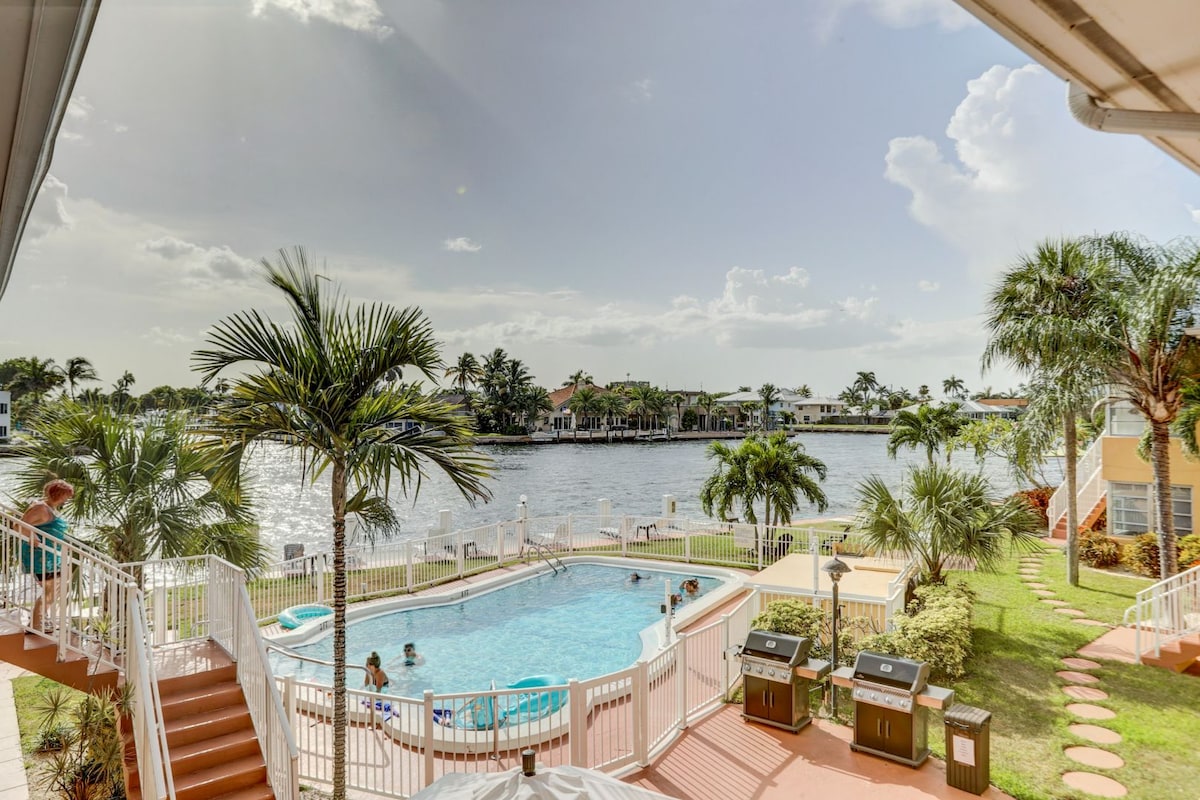 在运河上!泳池+步行到海滩! 看船!1卧室/1卫生间