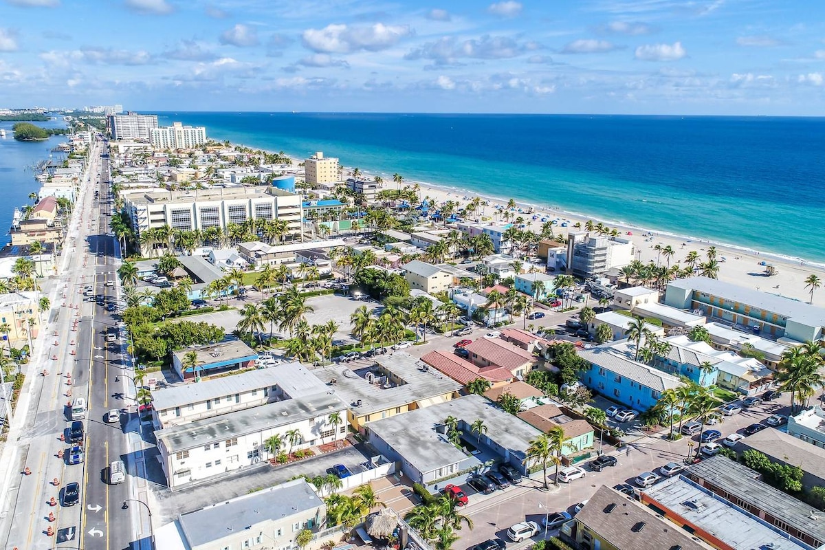 Escape to our vibrant retro chic style suite in Fort Lauderdale, ideal for beach lovers and explorers! With a pool view, cozy bedroom, and eclectic amenities, it's perfect for families or friends seeking a blend of comfort and style. Enjoy nearby beaches, a shared pool, and a charming outdoor area. Our unique space offers the warmth of home with the convenience of an ideal location. Ideal for those who appreciate tropical charm and a relaxed atmosphere. Near Port Everglades, airport & downtown.