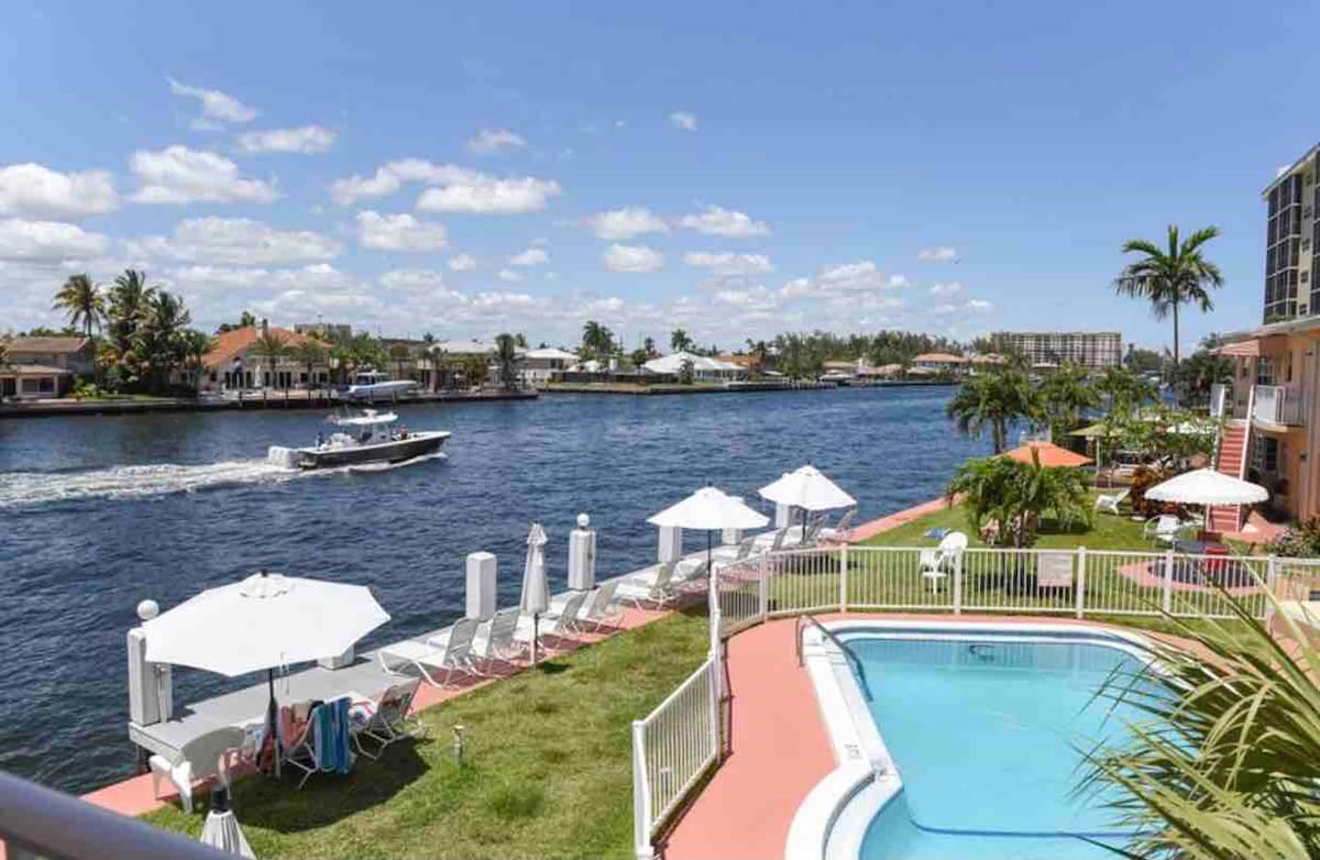 在运河上!泳池+步行到海滩!看船!1卧室/1卫生间