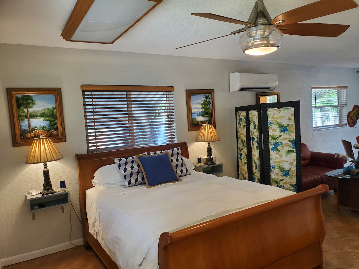 This studio is a short walk to Deerfield beach in the most ideal location considered "the cove" neighborhood! 2 minute walk to the cove that has everything you need. From restaurants, bars, salons, shopping, to coffee. Publix Grocery store 5 minute walk away. Sullivan Park for children/fishing 5 minute walk away. No car needed here for your ideal vacation but parking on property also available. Tv has streaming services. Late check-in OK. Self check-in. Ask us about bringing your boat!