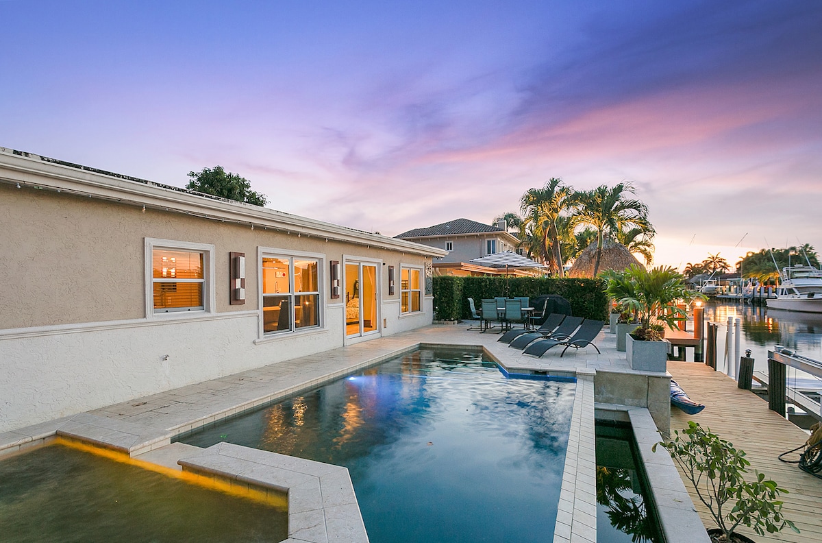 🌴Welcome to your canal-front retreat! Have some fun in the pool with the family, or enjoy some drinks in the hot tub and built in new wet bar. 🍹Our outdoor seating area has a TV 📺—perfect to watch your favorite Team play or for family movie night. 🍔🔥Relax under the gazebo with BBQ area, 💪🏋️♀️or work out in the outdoor gym. 🛌Comfortable bedrooms and two renovated bathrooms ensure a great stay. Just minutes from Pompano Beach’s beautiful shores and dining! 🏖️