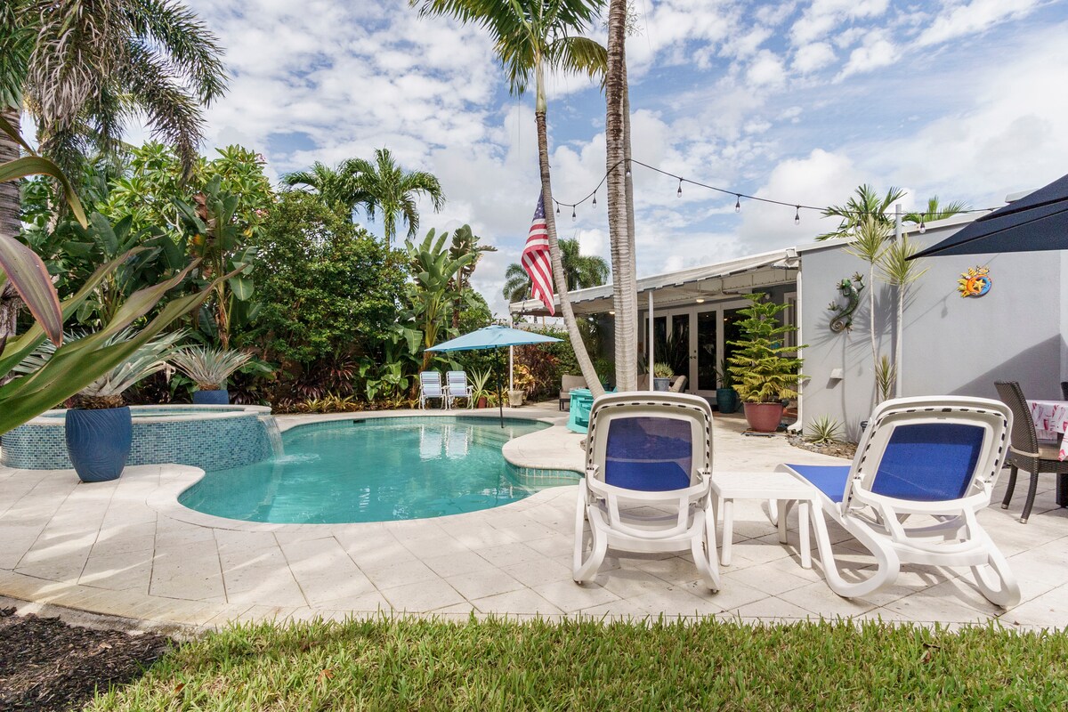 Escape to our stunning whole house oasis! Enjoy a comfy king bed vacation with remote work perks. - 2-bedroom, 2-bath gem - Jetted spa tub in one bathroom - Private backyard - HEATED salt water pool - Less then a mile from Wilton Drive - 🏋️ FREE access to Crunch Fitness - Less then 3 miles - Fort Lauderdale's Sebastian beach - Easy access to downtown, Las Olas & River Walk. - Stylish interiors - Perfect for 6 guests - Fully LICENSED-PERMITTED for your peace of mind. Book your getaway today!
