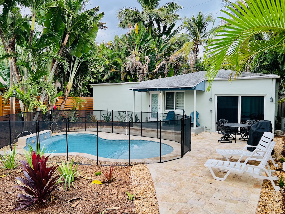 WATERFRONT HOME W/ HEATED POOL & FOUNTAIN, TIKI HUT W/BAR, KAYAKS & BIKES! DIRECT TO INTRACOASTAL W/LUXURY FINISHES & BEAUTIFULLY FURNISHED IN THE HEART OF POMPANO BEACH. THIS HOME INCLUDES 3 BEDROOMS & 2 BATHROOMS & A HEATED POOL! CLOSE TO BEACH, WATERSPORT ACTIVITIES, FINE DINING & UPSCALE SHOPPING. YOUR IDEAL FLORIDA BACKYARD GREAT TO GRILL & RELAX ON LOUNGE CHAIRS WHILE OVERLOOKING THE WATER. 2 KAYAKS INCLUDED!