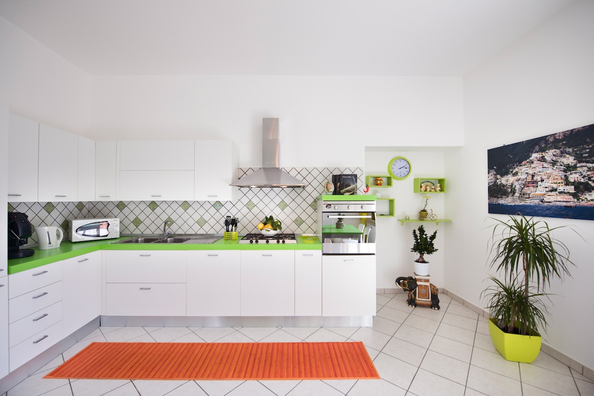 Elegant and spacious apartment in typical Mediterranean style with large terrace, surrounded by greenery, from which you can admire the beautiful bay of Positano. Ideal for those who want to spend an unforgettable holiday of relaxation and away from the hustle and bustle of the city but a few steps from the busy life of the center. A little corner of paradise at your fingertips.