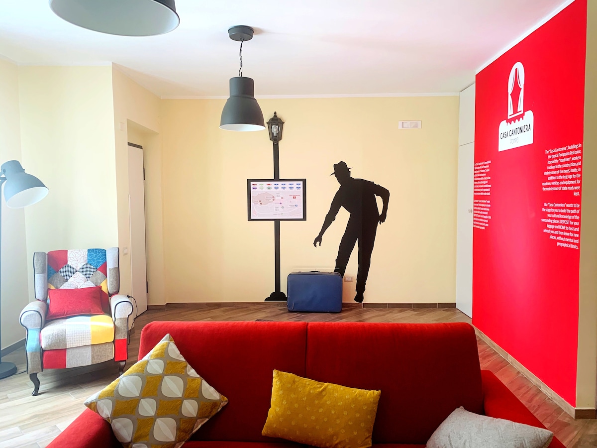 Centralità e stile in un connubio meraviglioso per la tua vacanza nel cuore di Pompei con vista sul Vesuvio Parcheggio gratuito con cancello automatico. A 300 mt dagli scavi, 400 mt dal Santuario un appartamento di circa 60 mq. finemente ristrutturato, con cura dei dettagli, dispone di una cucina attrezzata, rete WI-FI gratuita,Netflix L'accoglienza genuina di Ilaria e Gianluca sarà a coronamento della vostra permanenza nell'antica città E' possibile eseguire il self check in, in autonomia