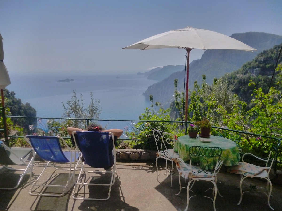 Flat sea view situated on the famous "Path of gods", ideal place for sportiv, romantic and lovers of hiking guests, at 5 km from the fascinating Positano. The appartament has all facilities: private terrace with unic scenery, kitchen, included breakfast and city tax. Is excluded trasportation of luggages but there is possibility to reserv with extra cost (5 euro per bag) a porter.