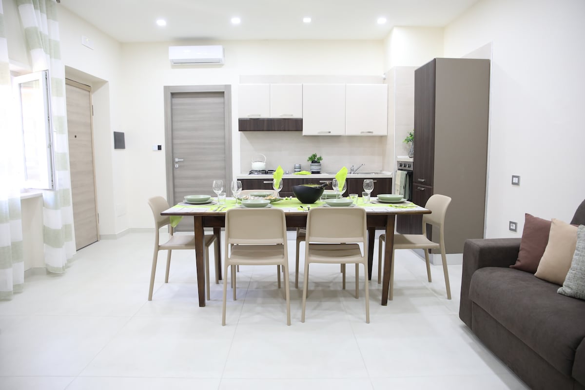 Apartment perfect for a couple or for a small family. Elegant and fully equipped, with a huge rooftop with a panoramic view. It’s located in front of the sea and the Castle. Only 5 minutes walking to Piazza del Plebiscito and the dock, furthermore it is close to bus stops, markets, restaurants and the metro station. Many years of experience hosting people from all over of the world.