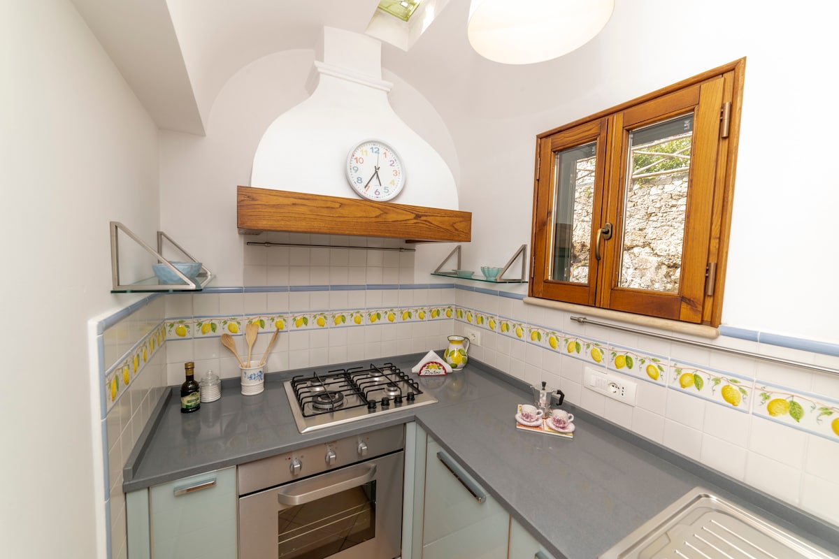 La Casa con ingresso indipendente è parte di uno Stabile "Rurale" di inizio '900. Bagno privato, letto matrimoniale, divano letto, frigo da camera, TV, WI-FI ed una romantica veranda con "vista da cartolina" dove poter sorseggiare un drink, un infuso, fare colazione o addirittura prendere ispirazione ed usarla come "workstation". L'accesso è agevole dalla strada o dal parcheggio, (eventualmente disponibile), attraverso il giardino di limoni, la corte privata e pochi scalini.