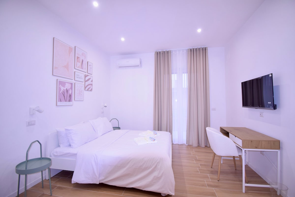 The Holiday Home is located in a secure private residence, a few steps from the center of Pompeii and the archaeological excavations and the Sanctuary and the main means of transport. The Holiday Home inaugurated in May 2023 is equipped with private covered parking and a common garden. Inside the house you will find all the main comforts including a complete functional kitchen and a laundry area equipped with a washing machine and dryer, you can also dry on the terrace in the open air.