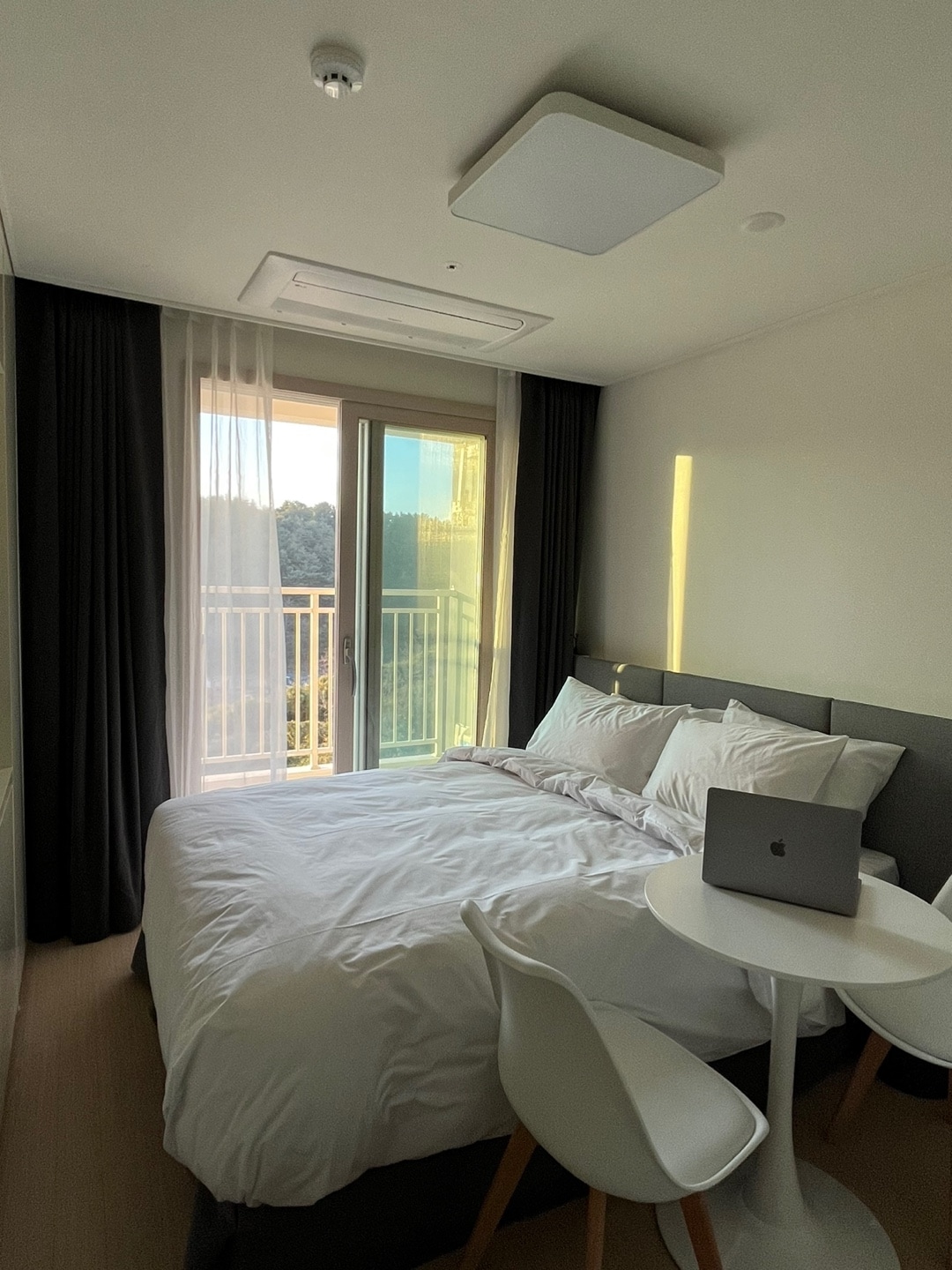 2023 Grand opening, E7 in Jukdo. -One Studio Room (Double bed) -Just in front of Dongsan Beach, 10Sec from the Beach -Check In from PM4:00 -Check Out by AM11:00 -3Min by car from Jukdo Beach, Ingu Beach -15Min by car from Jumunjin Beach, BTS MV location -30Min by car from Kyungpo Beach, Sok-Cho and Seolak Mountain. -Refrigerator, Electric range, Microwave, Dishware, Pot, Frying pan -Shampoo, Hair conditioner, Body shampoo, Tower Thank you:)