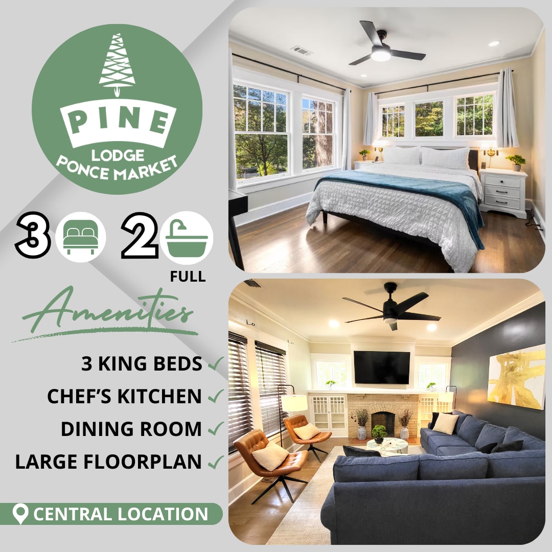 The historic Monroe House was built in 1920, recently upgraded with more refined finishes. The Monroe House’s 1st floor Airbnb apartment offers luxurious King and Queen size beds, a fully stocked kitchen, full laundry, gig speed wifi with room to entertain. The back area provides two private parking spaces—walking distance to Ponce City Market, Whole Foods, Trader Joe's, and Piedmont Park. The Airbnb is the convenient 1st floor apartment of a duplex. It is child friendly and pet friendly.