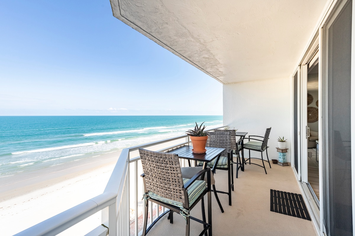 Our condo is directly on the ocean with a great view from the 2nd floor. The building was completely refurbished in 2021. Amenities include a heated pool, grilling area, covered parking and a beachfront deck with picnic tables and lounge chairs. Restaurants are within walking distance or just a short drive away. There is plenty to do in Ponce Inlet from climbing Florida's tallest working lighthouse, visiting the lighthouse museum, the marine science center, fishing, surfing or just relaxing.