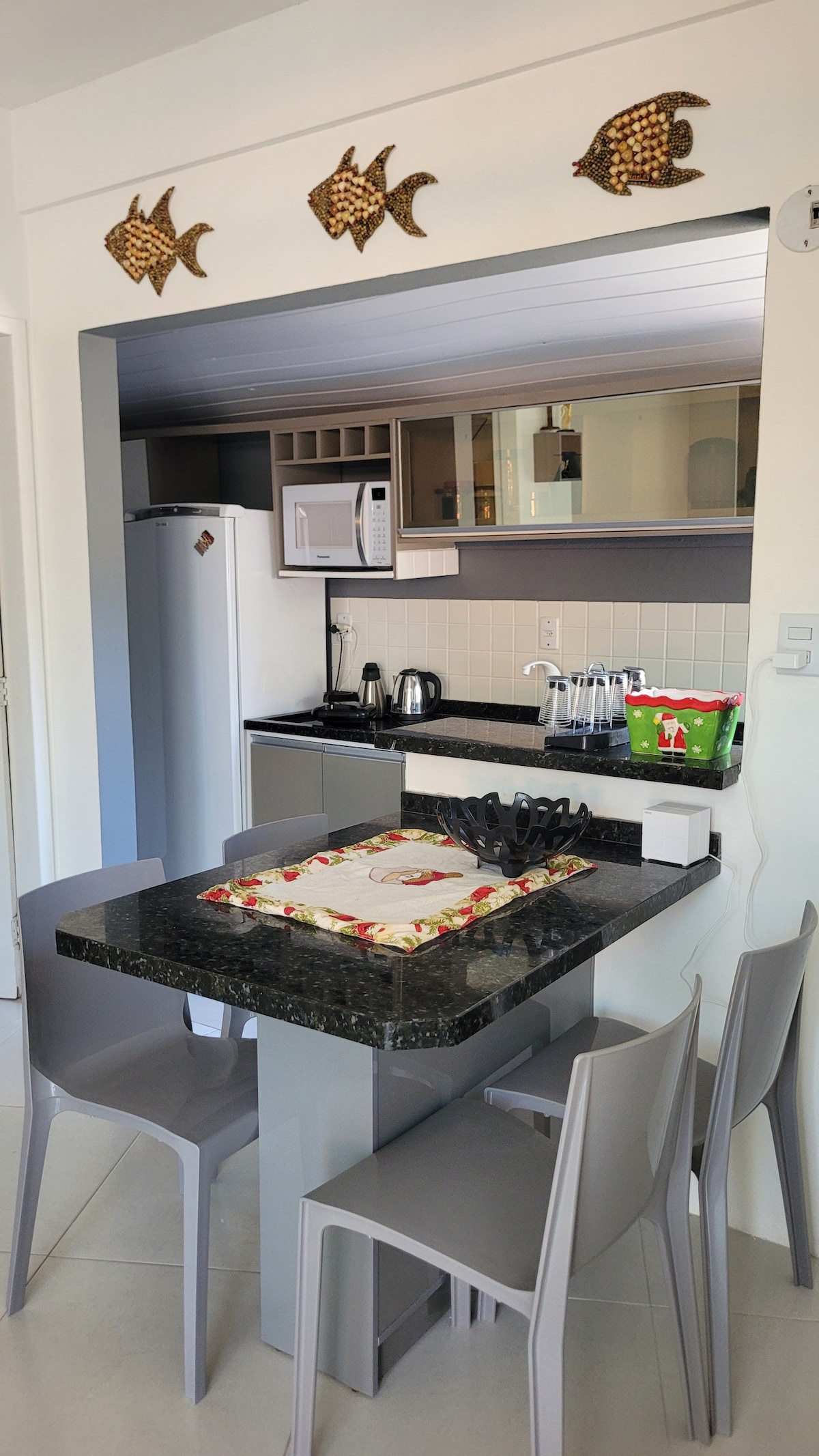 Lindo apartamento, mobilhado, no melhor condomínio com Piscina do Sul do Pais - Marine Home Resort 1 quarto com suite com 1 cama de casal e 1 cama de solteiro, 1 lavabo, cozinha, sala dois ambientes, área de serviço, sacada com churrasqueira. Na sala há 1 sofá-cama super confortável e um colchão inflável Ambientes com AR CONDICIONADO. WIFI, SMART TV com NETFLIX nas 2 TVS (IPTV) Garagem coberta para 1 carro Condomínio a 100m da praia da Cachoeira. Possui Minimercado no térreo