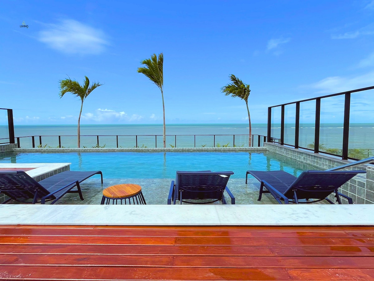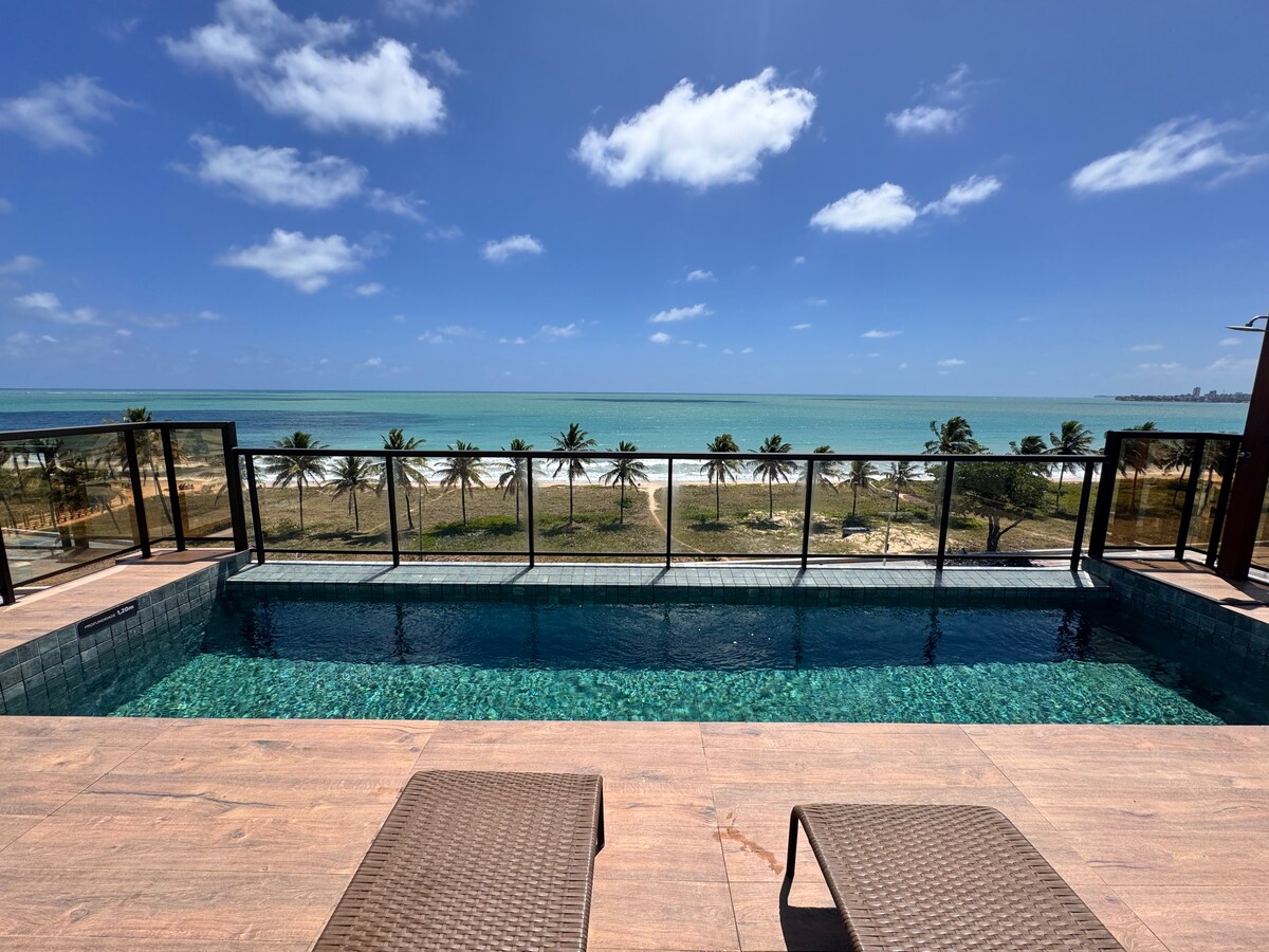 O Paraíso no Bessa - Luxuoso flat com jacuzzi privativa, pé na areia na praia do Bessa. Nossa acomodação é perfeita para quem busca conforto, elegância e uma vista de tirar o fôlego ! Área externa privativa com uma linda jacuzzi particular. Quarto e sala climatizados, cozinha completa, Wi-Fi, Smarts TV sala. O condomínio possui uma piscina incrível na cobertura, academia, sala de jogos, lavanderia e coworking. Localizado perto de restaurantes, bares e com serviço de praia em frente ao prédio.