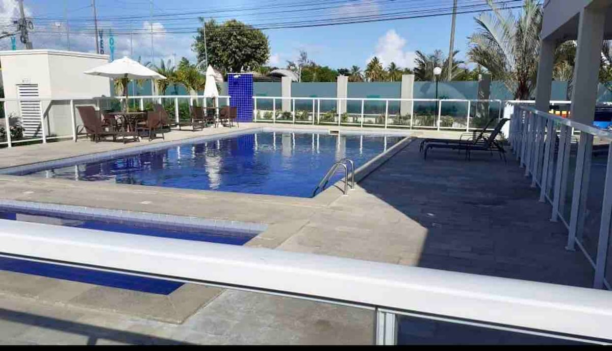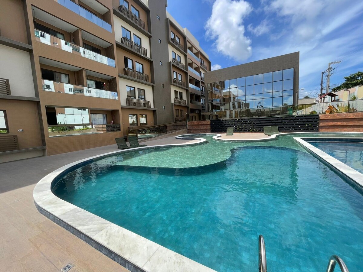 MagnMagnífico apartamento moderno e completo, com quarto de casal, sala com sofá, casa de banho e cozinha equipada com micro-ondas, cafeteira e secador de cabelo. Inclui lençóis e toalhas. A apenas 200 m do mar, perto do Caribessa, área nobre de João Pessoa. Condomínio com recepção 24h, piscina adulto/infantil com borda infinita e hidromassagem, vista para o mar, churrasqueira, academia, sala de jogos, espaço infantil, salão gourmet, lavanderia e estacionamento privado.