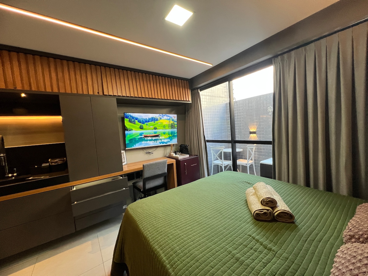 Apartamento tipo Flat/loft próximo ao mar com piscina infantil e adulto de borda infinita na cobertura. O prédio ainda conta com uma academia e equipamentos para pilates, hidromassagem, churrasqueira, salão de jogos e mais.Trata-se de um espaço super equipado e aconchegante, ideal para casal ou casal com filhos. Com toda comodidade que o bairro do bessa oferece e toda a beleza do famoso "caribessa".
