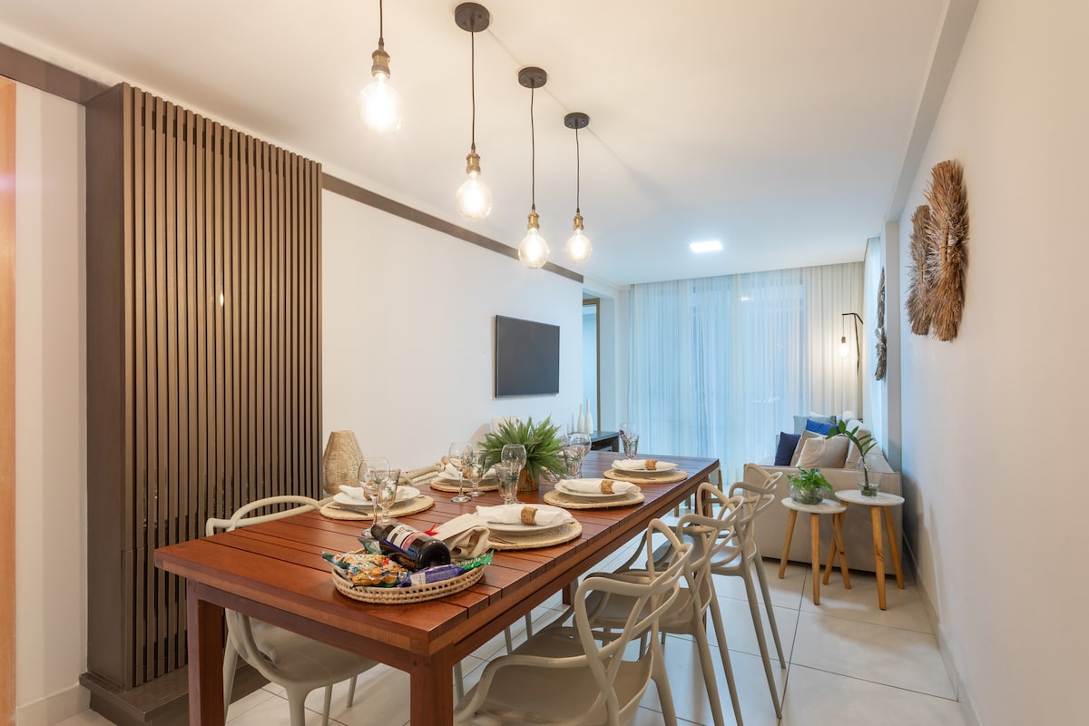 Moderno Apt. de 1 quarto - vista lateral do mar, preparado para sua família. Prédio c/ Elevadores e Garagem Area externa FANTASTICA com piscina, academia, gazebos e área verde com acesso privativo a praia (PÉ NA AREIA MESMO) Praia do Poço - Cabedelo, junto a comércio, mercado, pontos turísticos como Areia Vermelha, Por do Sol do Jacaré, Farol de Cabedelo, Fest Verão, Lovina, ficando a 30 min. de pontos turísticos de João Pessoa e praias de Manaira, Bessa, Tambaú e Cabo Branco Max 4 pessoas
