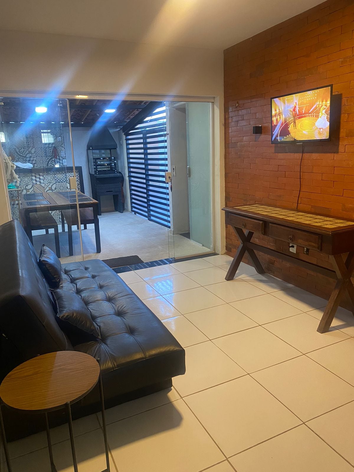 Apartamento bem localizado na Praia de Ponta de Campina-PB (sendo uma quadra da praia) com 54m2, 2 quartos um deles suíte e um banheiro, possui 3 Tv’s, Wi-Fi, ar condicionado nos 2 quartos que tem cama de casal, cozinha equipada com fogão, geladeira, Air Fryer, filtro de água, microondas, sanduicheira, liquidificador, panelas e louças. Na sala mesa com quatro cadeiras, nos banheiros os chuveiros são elétricos. O prédio possui estrutura com piscina com vista para o mar, academia e churrasqueira.